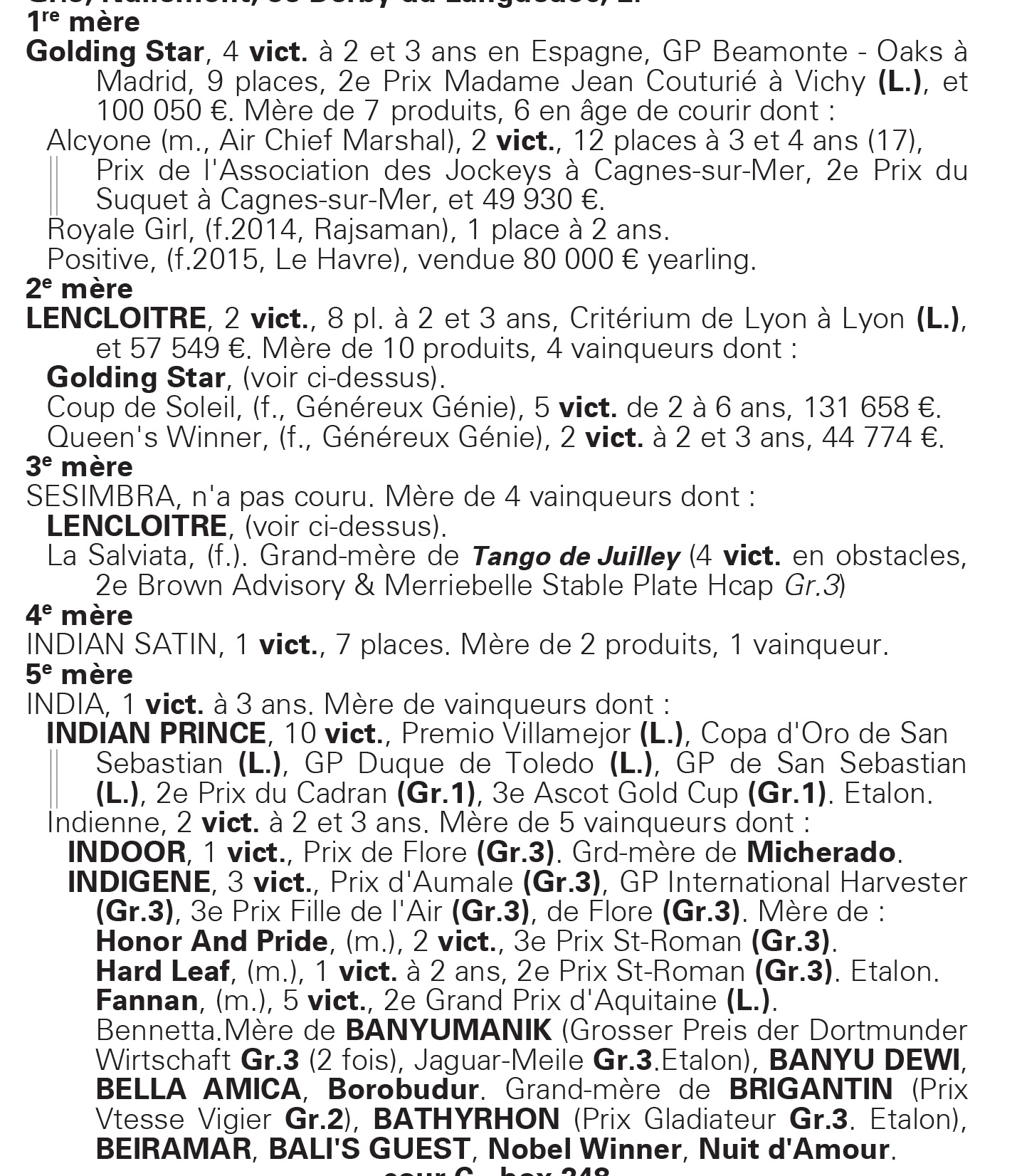 Consultez l’annonce de SPARTACUS D’ARTAIX, jeune 2 ans par Air Chief Marshal et mère par LE HAVRE.